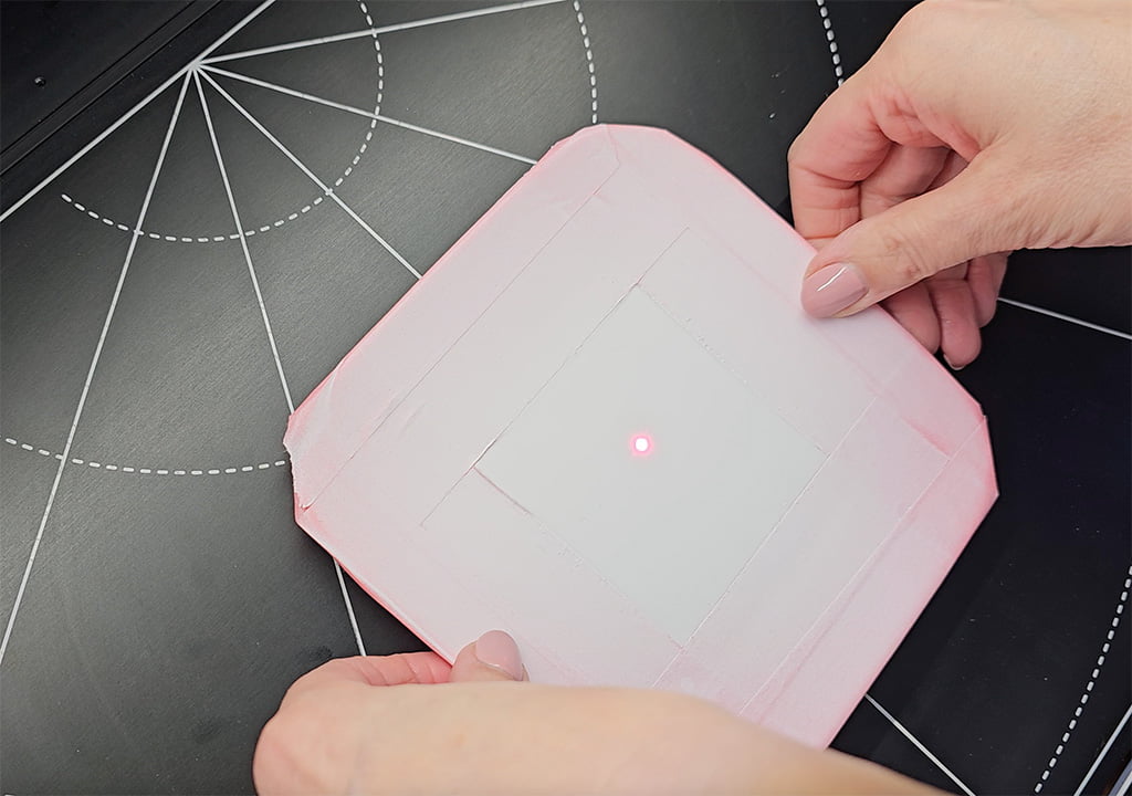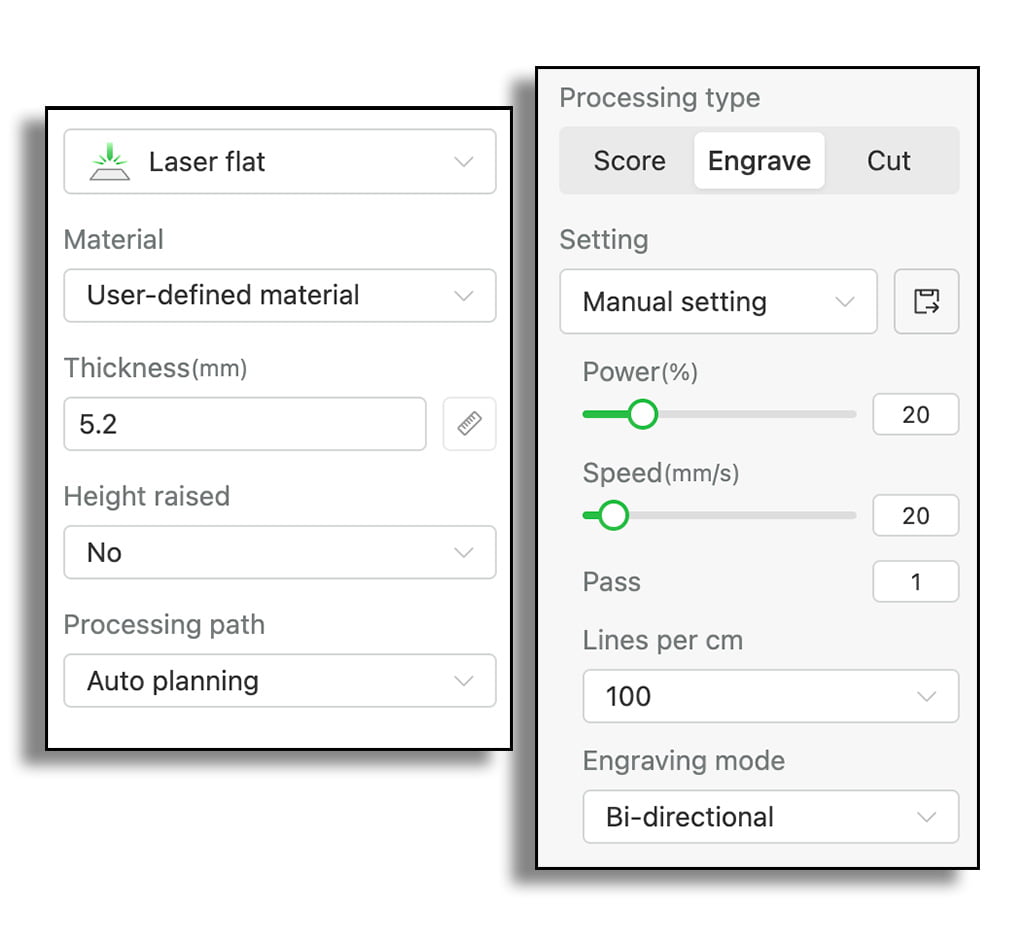 Bepaal welke instelling je het mooist vindt. Als je dezelfde verf en hetzelfde schoteltje gebruikt als ik, dan kun je zowel de power als de speed op 20 zetten voor een mooie donkere gravering. Meet de dikte van je schoteltje wel even automatisch op, want daar kan verschil in zitten.