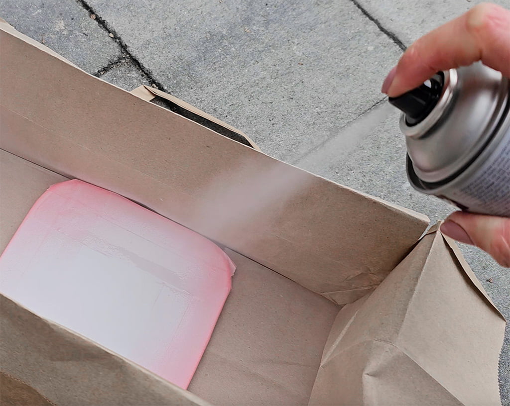 - Ontvet het schoteltje goed en verf het bordje met een matte witte verf, ik gebruikte hiervoor een spuitbus van Action en spoot het in 2 lagen. Plak eventueel de ruimte af waar je niet wilt graveren, want dat scheelt weer met het verwijderen van de verf.