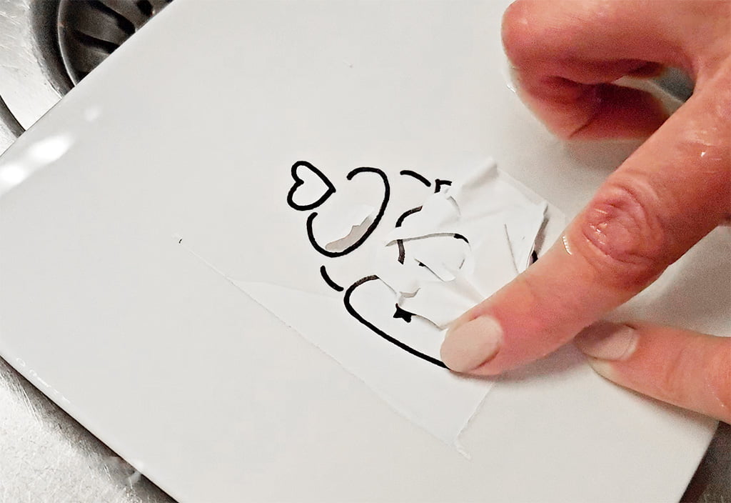 - Als het schoteltje gegraveerd is kun je de verf er af wassen.