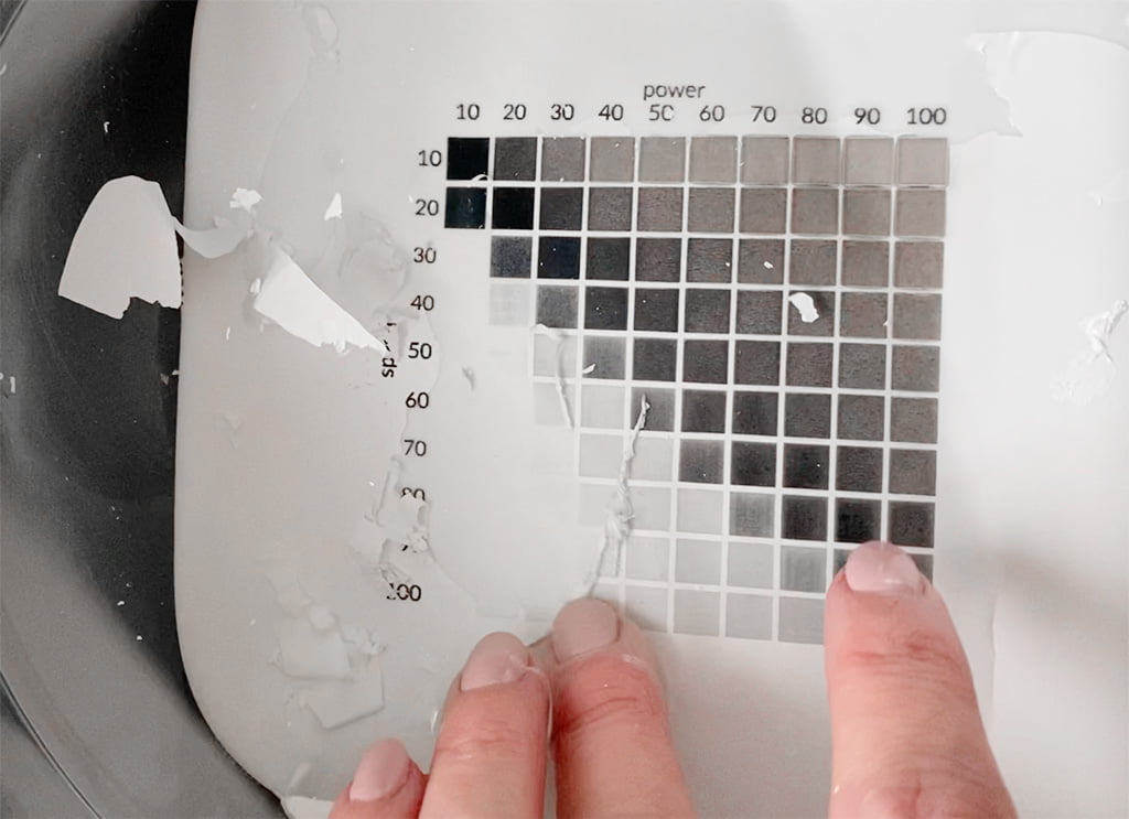 Via xTool projects kun je het grid downloaden om te bepalen welke instellingen voor jouw project het beste werken. Ik kan me voorstellen dat je een ander resultaat krijgt bij een ander bordje of andere verf. Door eerst deze test te maken kun je voor jezelf bepalen welke settings het beste zijn.