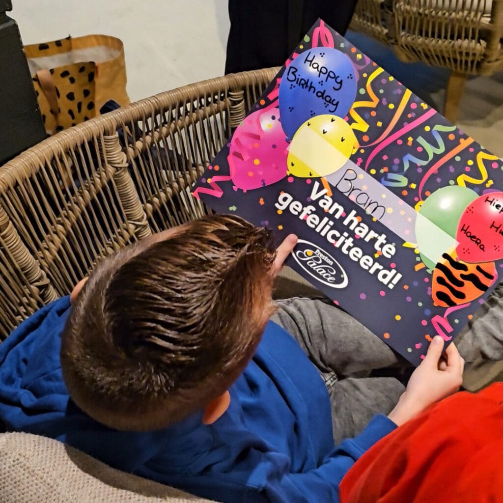 Bij binnenkomst werden we opgewacht door een medewerkster van Preston Palace met een welkomstbord voor Bram. Hier kregen de kinderen uitleg over het feestje en konden ze hun vragen stellen.