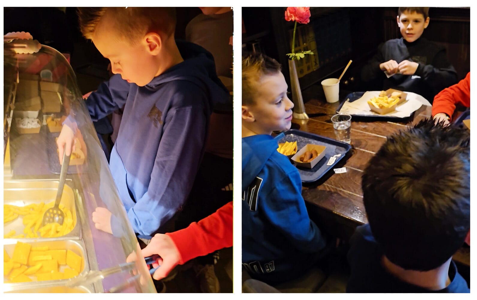 Na zo’n gaaf feestje bij Preston Palace wordt de dag afgesloten met een snackbuffet. De kinderen mogen hun eigen bakjes vullen met patat, snacks en sausjes. Daarbij kunnen ze water of limonade kiezen. De kinderen met grote trek, mogen uiteraard nog een rondje maken langs het buffet, zodat ze met een volle buik naar huis kunnen. En mocht je gewend zijn de kinderen na afloop van het feestje nog een snoepzakje mee naar huis te geven, dan hoef je daar zelf bij dit arrangement niet aan te denken. Er stond namelijk op elke tafel een tasje klaar voor met voor elk kind een zakje snoep.